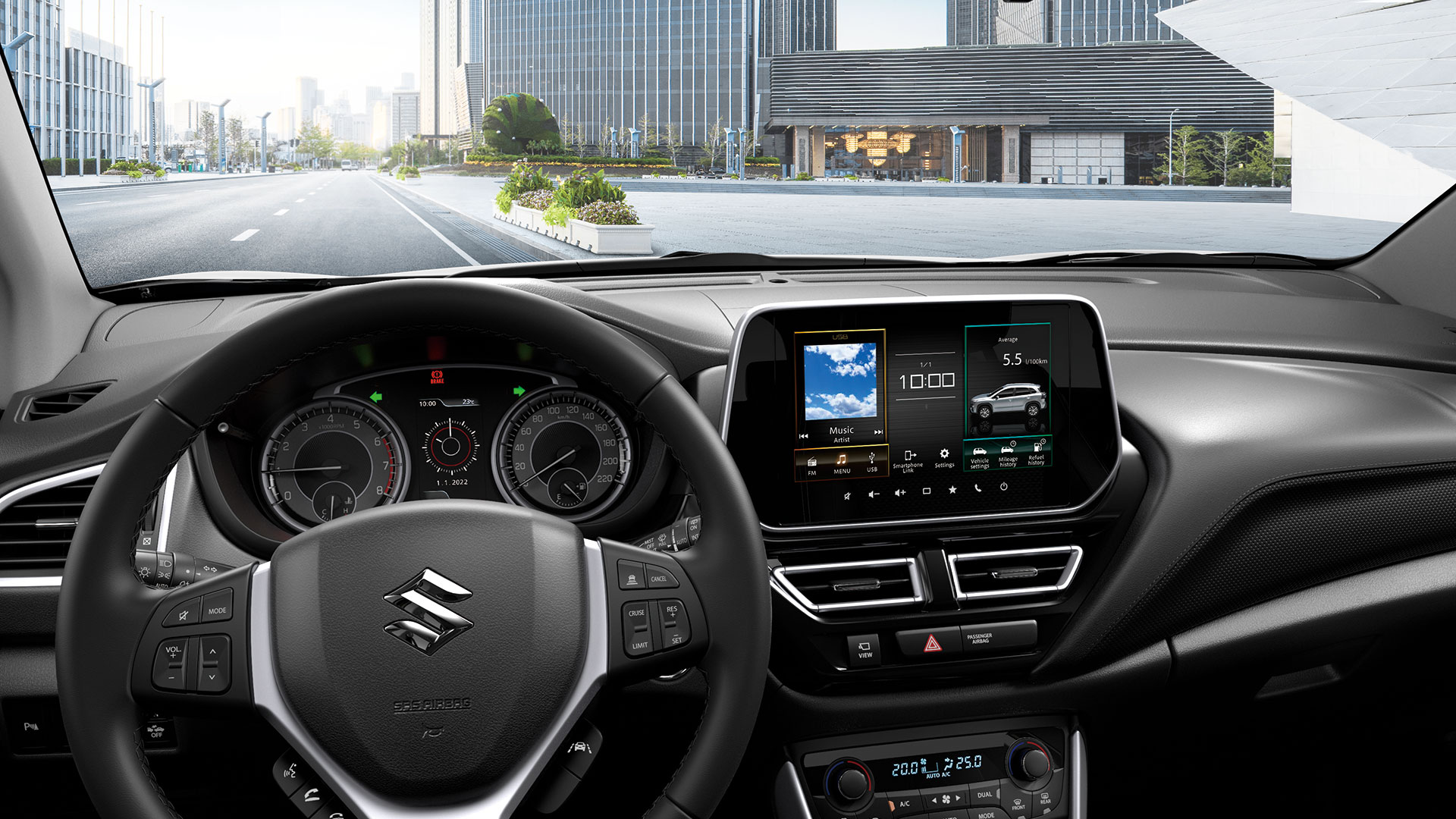 Chiar și la interior, noul S-CROSS este despre bucuria de a trai fara limite. Habitaclul spațios este aerisit și luminos grație unui parbriz generos și a vizibilității laterale excelente. Vino să descoperi ce n-ai mai văzut până acum.