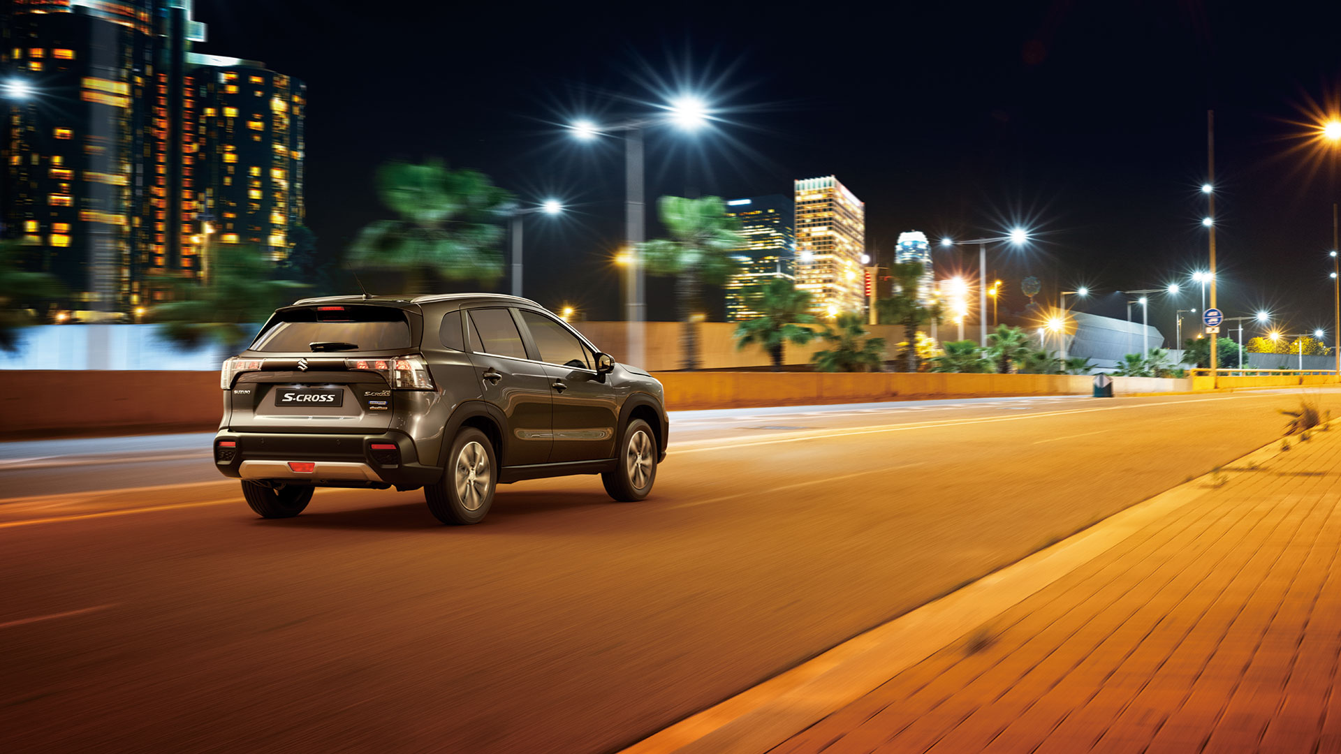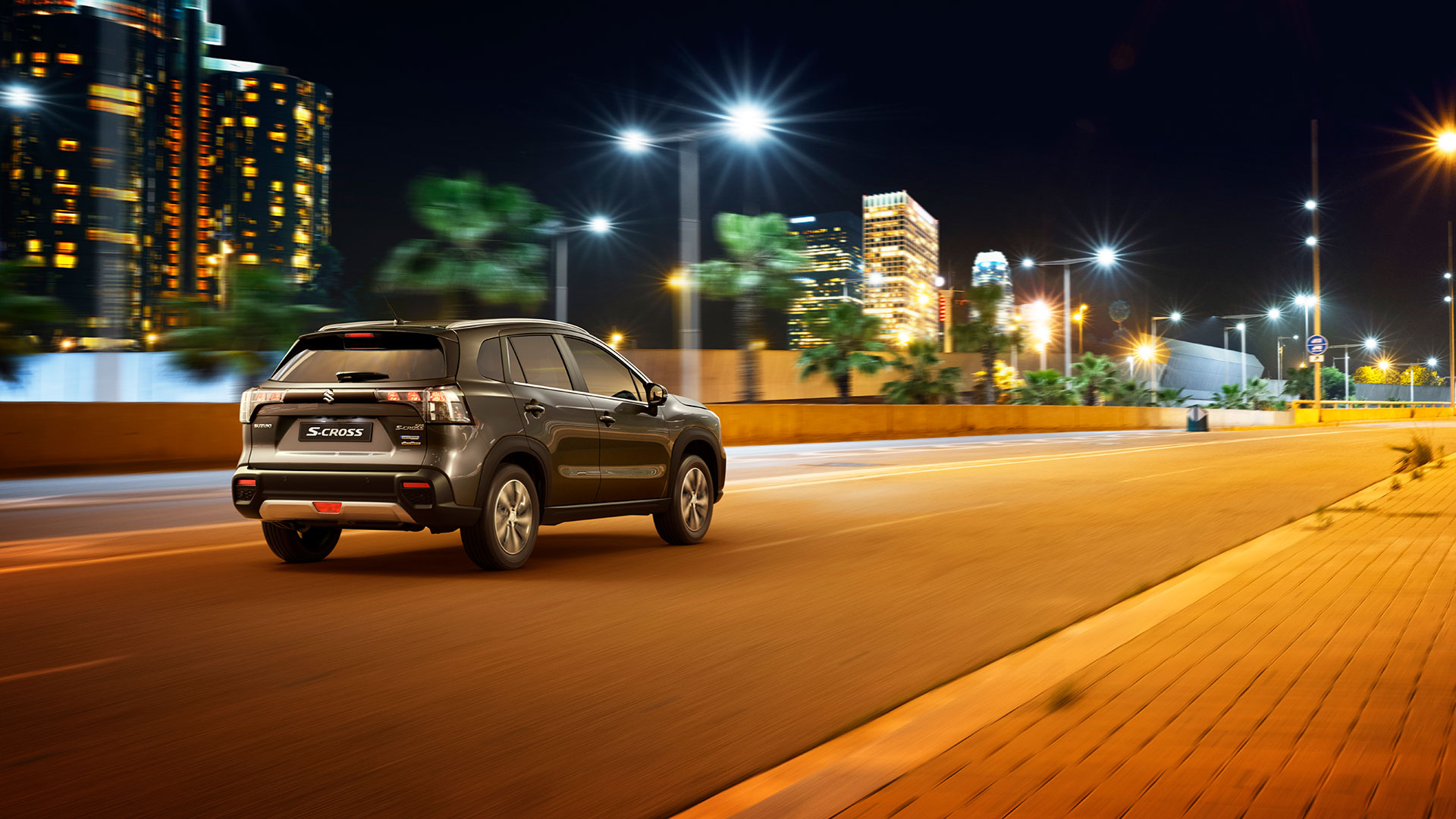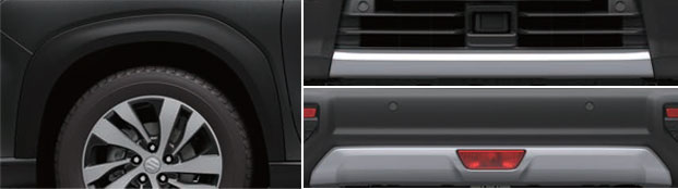 Aripile laterale rectangulare oferă un plus de caracter aspectului exterior. Elementele decorative argintii prezente pe bara spate și bara față întăresc personalitatea îndrăzneață a noului S-CROSS și contribuie la o primă impresie care durează.